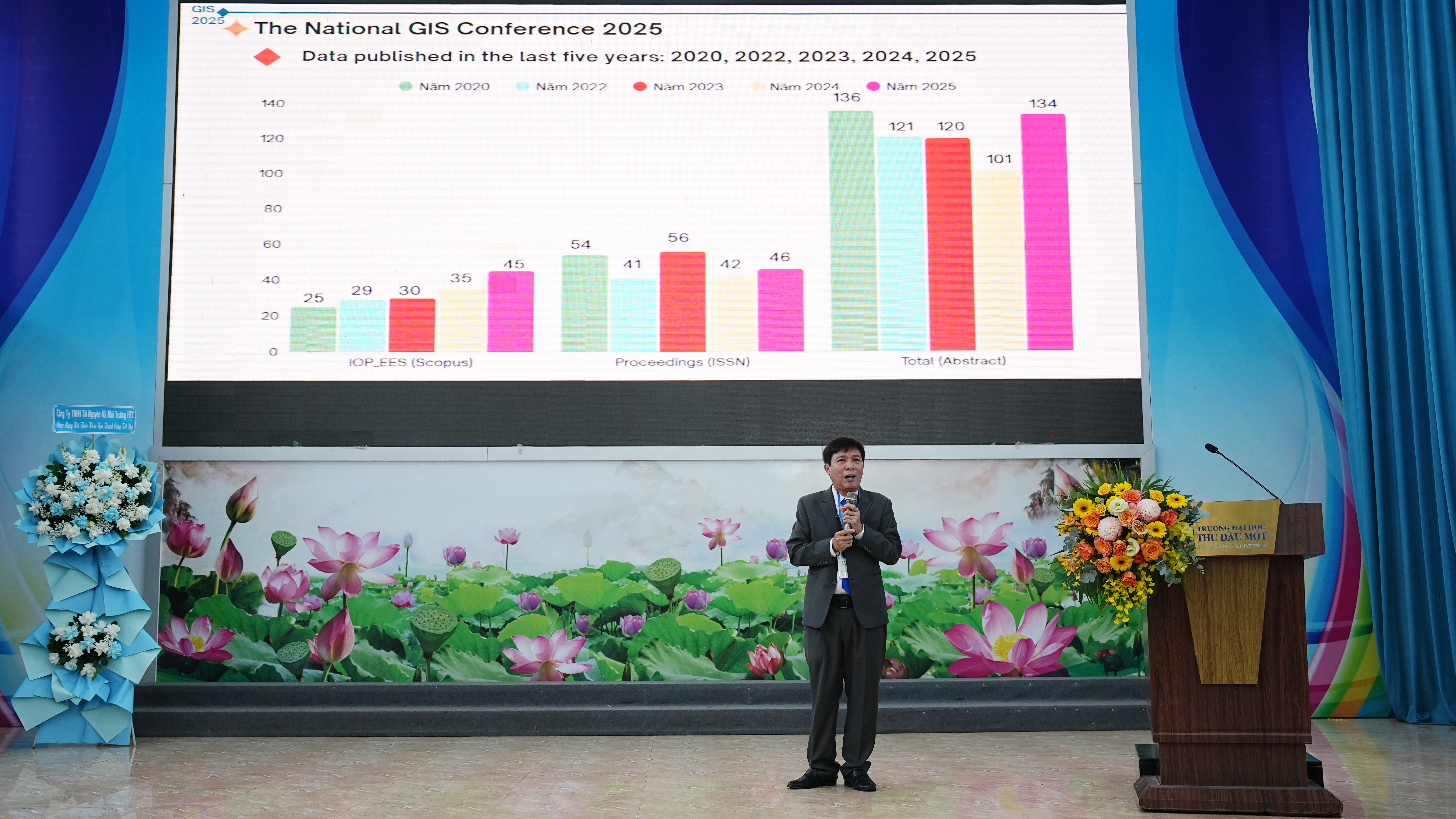 First held in 2009, the National GIS Application Conference has been organized annually for 16 consecutive years, becoming a prestigious academic forum that attracts numerous researchers and experts in Geographic Information Systems. Beyond the national scale, the conference has expanded international cooperation with partners from Taiwan, South Korea, Japan, and others—creating a dynamic academic environment where scientists share research findings and practical experiences in applying GIS, GPS, and Remote Sensing for resource management, disaster monitoring, and urban development planning. As the host institution in 2025, Thu Dau Mot University made thorough preparations to ensure a successful event in both scale and academic quality. The Organizing Committee received more than 100 submissions focusing on GIS applications in smart urban planning and management in connection with green technologies and sustainable development. Among these, 40 papers were selected for publication in the Conference Proceedings (with ISBN) by Vietnam National University Ho Chi Minh City Press, and 06 papers were published in the Thu Dau Mot University Journal of Science. Notably, the conference continued its English-language publication series under IOP Publishing, indexed in Scopus, contributing to the international dissemination of Vietnam’s scientific research.