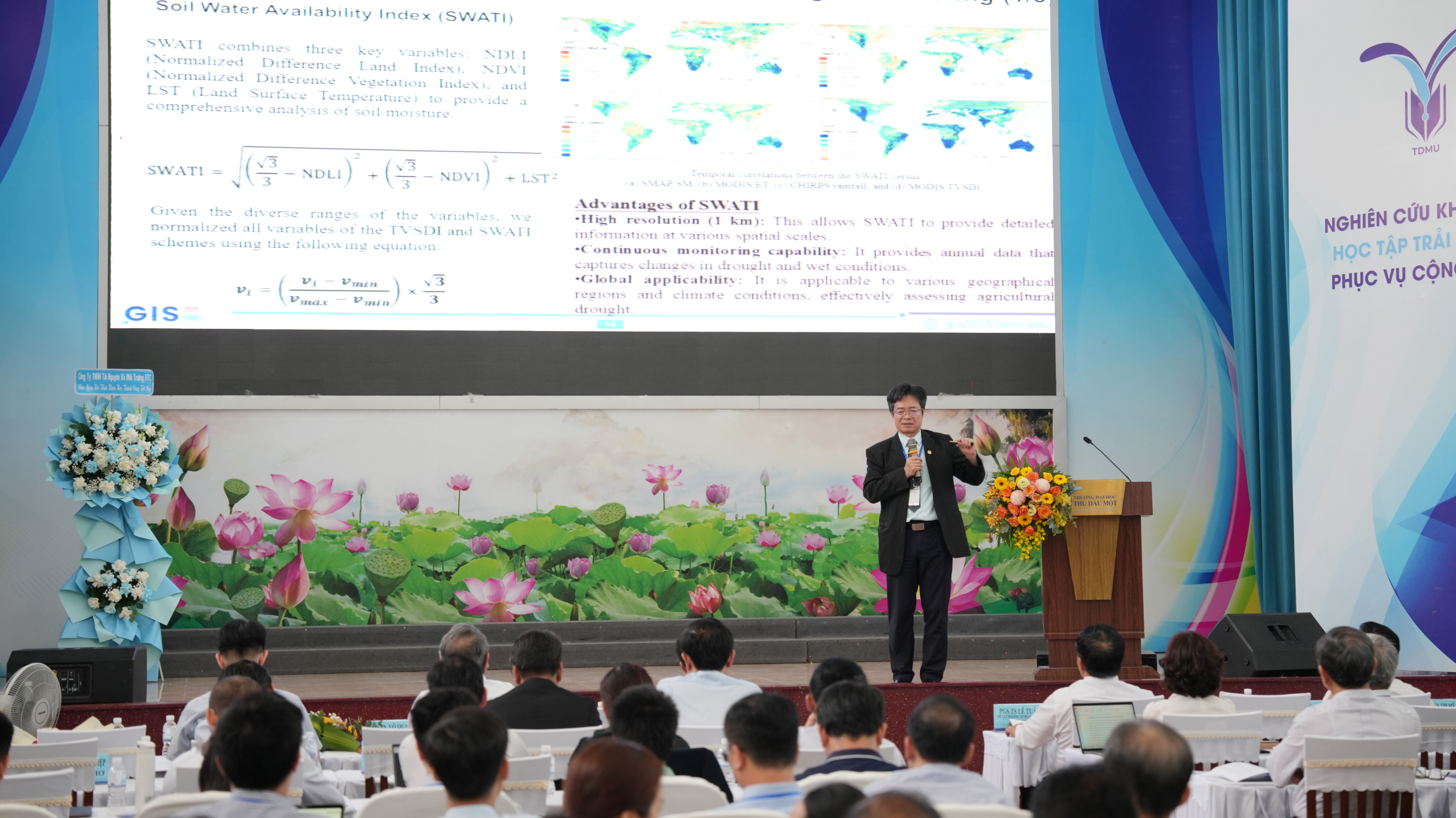 Prof. Dr. Nguyễn Kim Lợi, Director of the Center for Climate Change Research, Nong Lam University Ho Chi Minh City, delivered a presentation on “Integrating AI–GIS in Developing Disaster Prevention Solutions under Climate Change Impacts.”