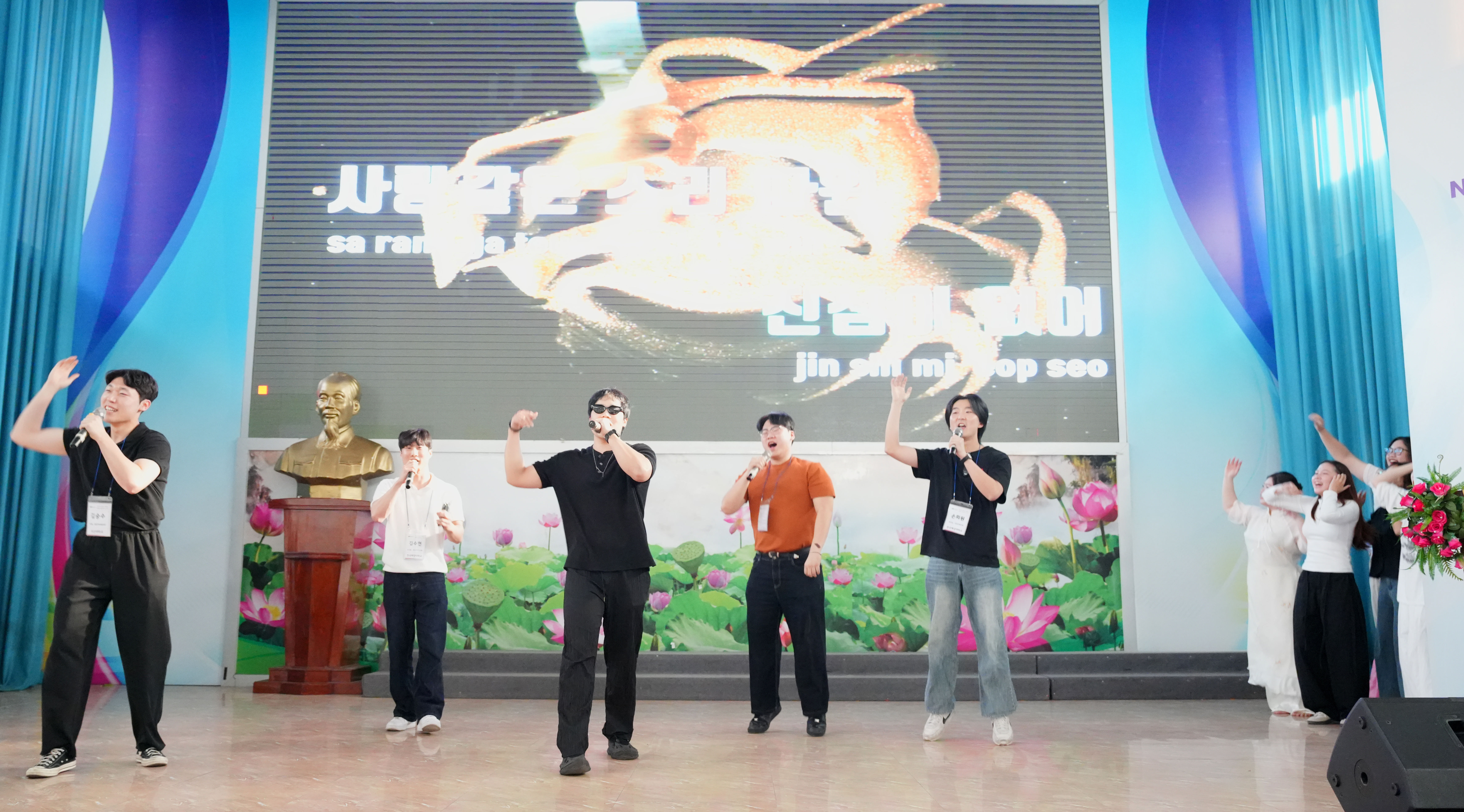 Within the framework of the program, students from both sides participated in cultural and artistic performances that vividly reflected the unique cultural identities of Vietnam and the Republic of Korea. These performances introduced distinctive features of each country’s traditions, arts, and cultural life. Carefully prepared and enthusiastically performed, the performances created a lively, friendly, and engaging atmosphere. In addition, the program included interactive activities such as quiz games designed to enhance understanding of the history, culture, countries, and people of Vietnam and Korea. Through direct interaction, students not only broadened their cultural knowledge but also strengthened connections, promoted cooperation, and fostered friendship and mutual understanding within the student communities of both countries.