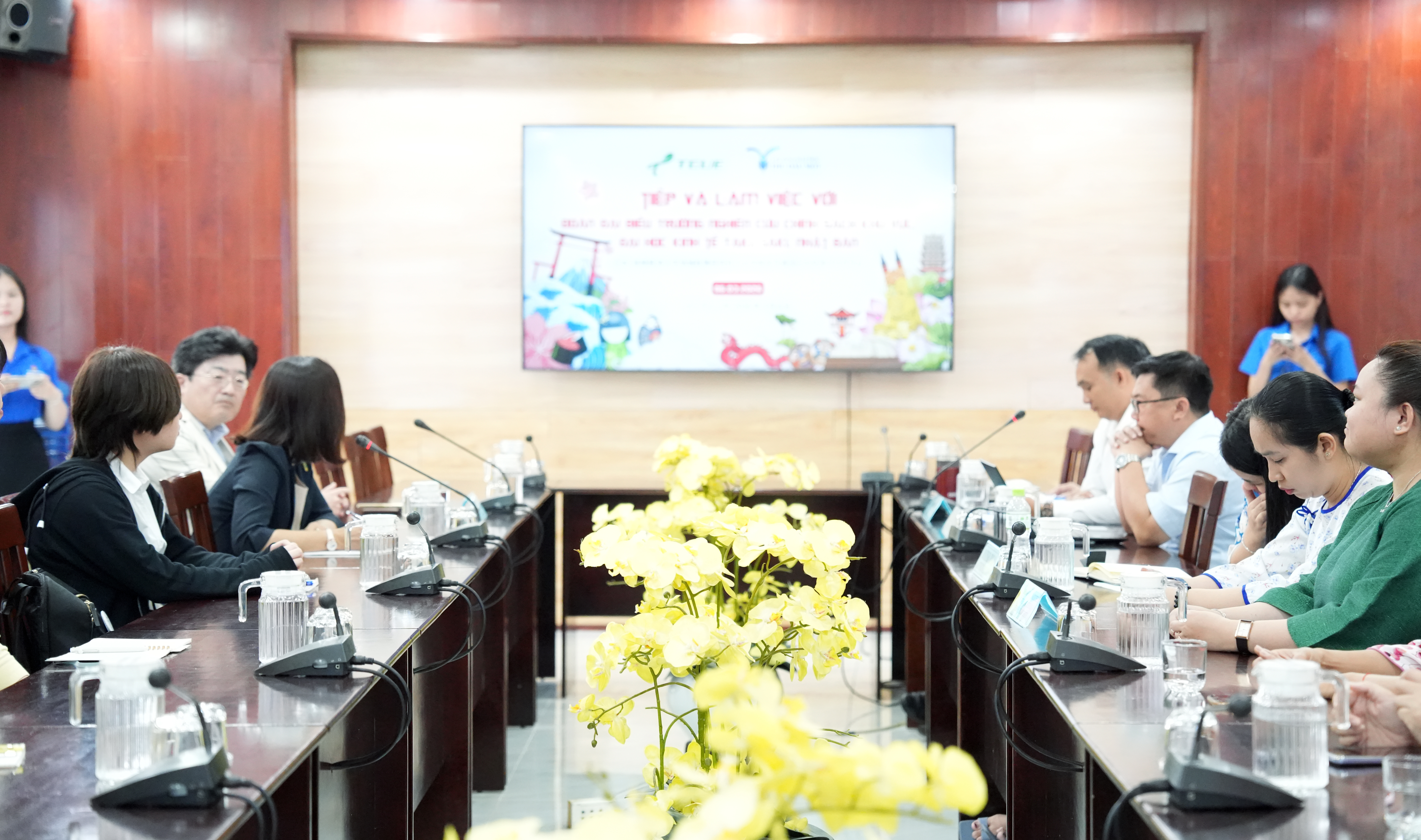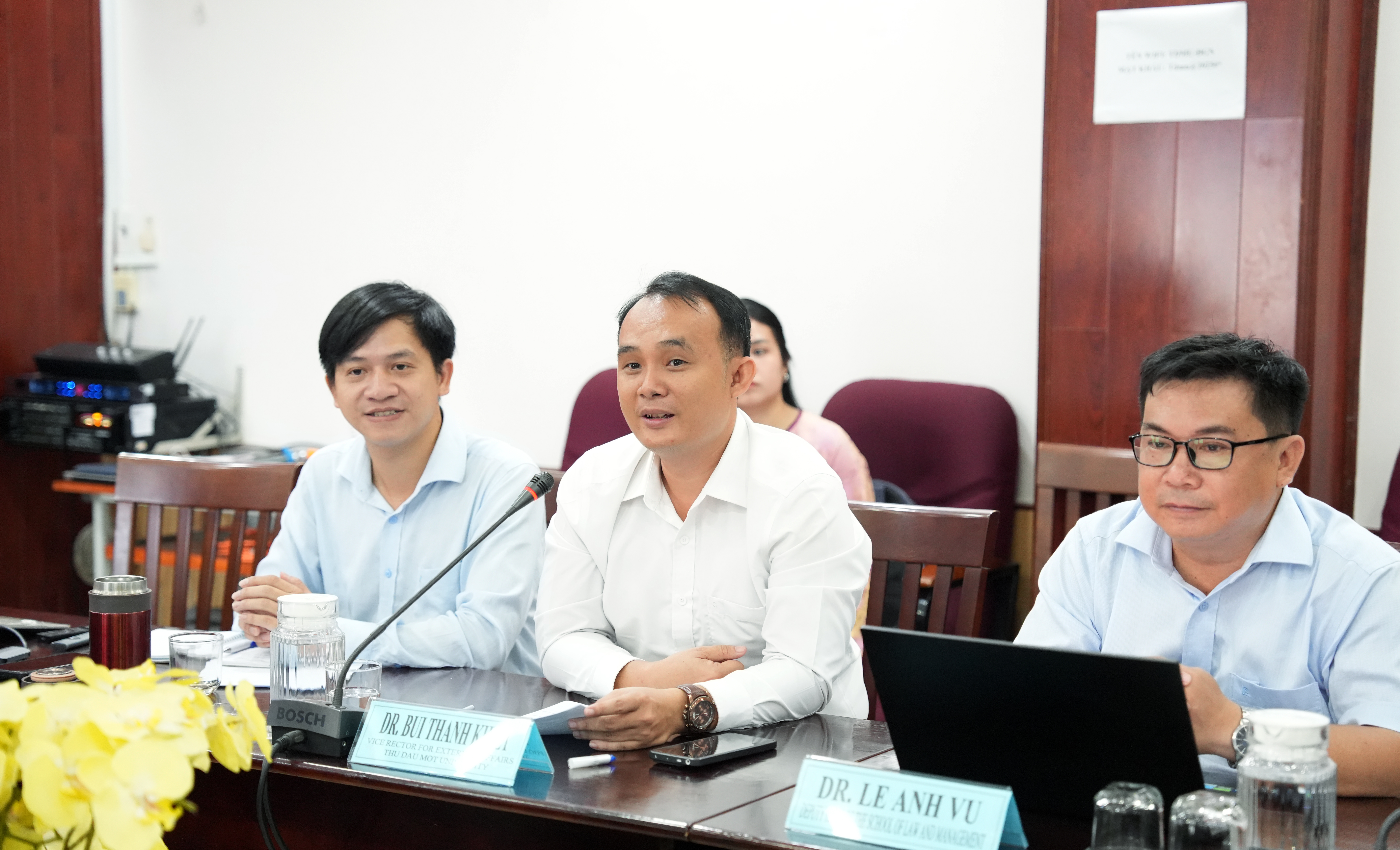 The delegation was welcomed and received by Dr. Bui Thanh Khiet – Vice President of Thu Dau Mot University, along with representatives of relevant departments.